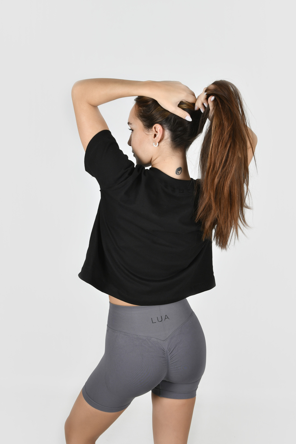 Calza seamless corta confeccionada en spandex, con frunce trasero, disponible del talle S al XL.